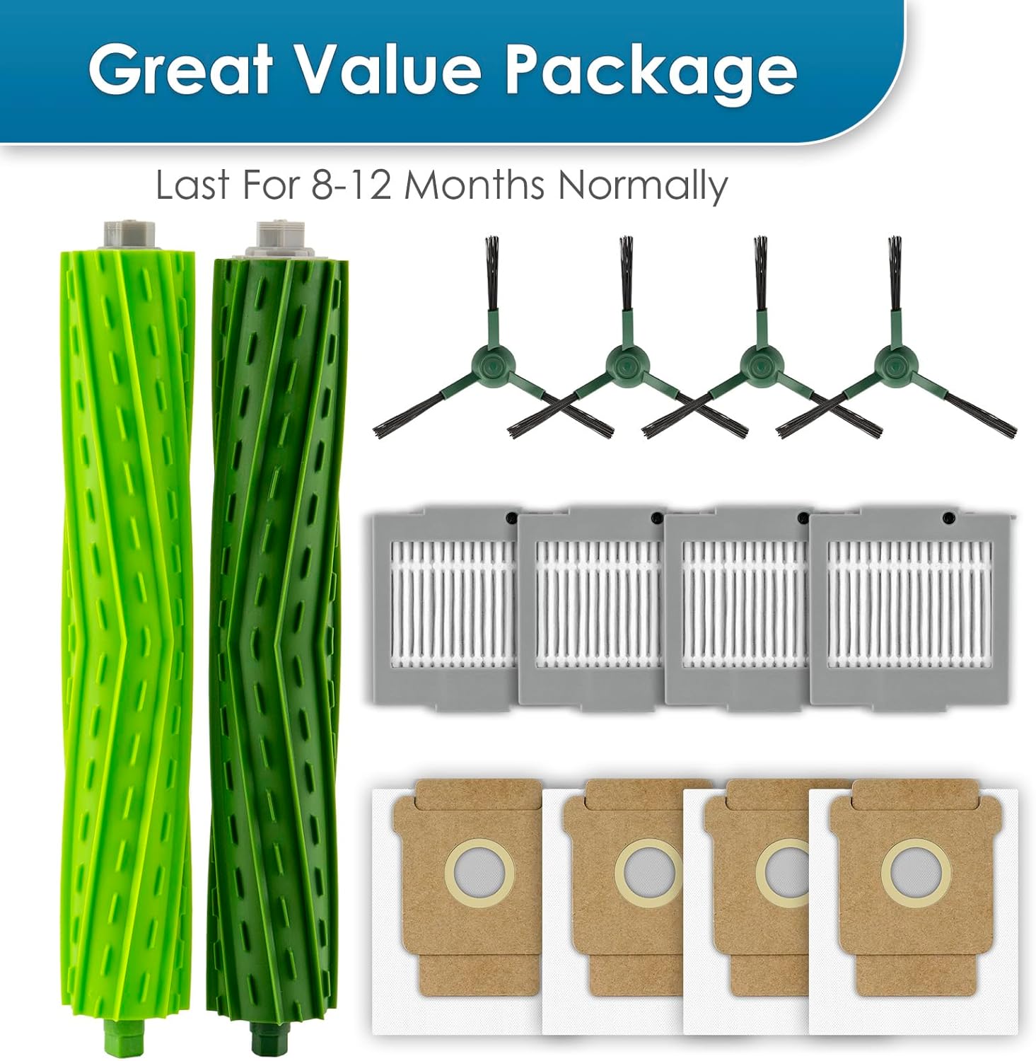 | Included Components | Accessories kit: 14 parts included: 2 roller brushes, 4 side brushes, 4 HEPA filters, 4 dust bags/ Perfectly compatible with iRobot Max 705 Vac robotic vacuum cleaner/ Easy installation |