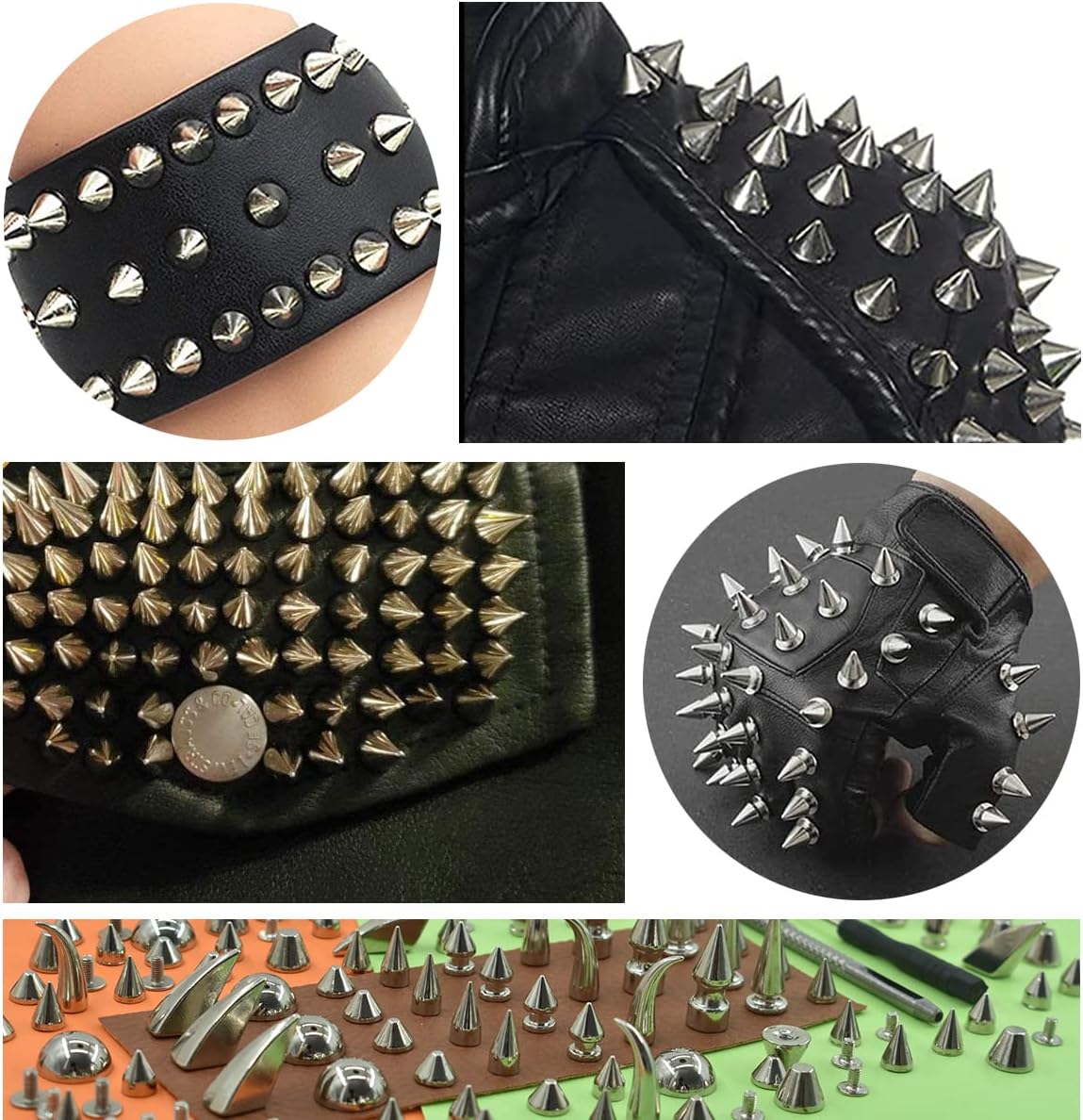 150 Sets Silver Mixed 13 Shape Spikes and Studs Assorted Sizes Screw Back Bullet Cone Studs and Spike Rivet for Leather Craft Product details: Material: zinc alloy Color: silver Spikes size: as the picture show Shape: 13 different Shape Spikes and Studs Features: Spikes for crafts can be used repeatedly. Convenient to disassemble, just use a screwdriver to unscrew the screws on the spikes. The spikes can be used multiple times, making a greener life. Easy to Use: 1. Place the puncher in the area where you need to be punched. 2. Hit puncher rear end with a hammer or other item. 3. Put the screw in the round hole, and tighten the top of the cover. 4. Finally the process is finished. These are pretty sharp and you will love them! They will definitely look cool with your DIY project. Wonderful products that you can’t miss. Wide Application: It can be used to bags, shoes, belts, jacket, dog collar, garments, clothing and any other leather craft DIY Accessories. Package Contents: 150 x Cone spikes studs with screw back 1 x Hole Punch 1 x Screwdriver 1 x Clear Storage Box