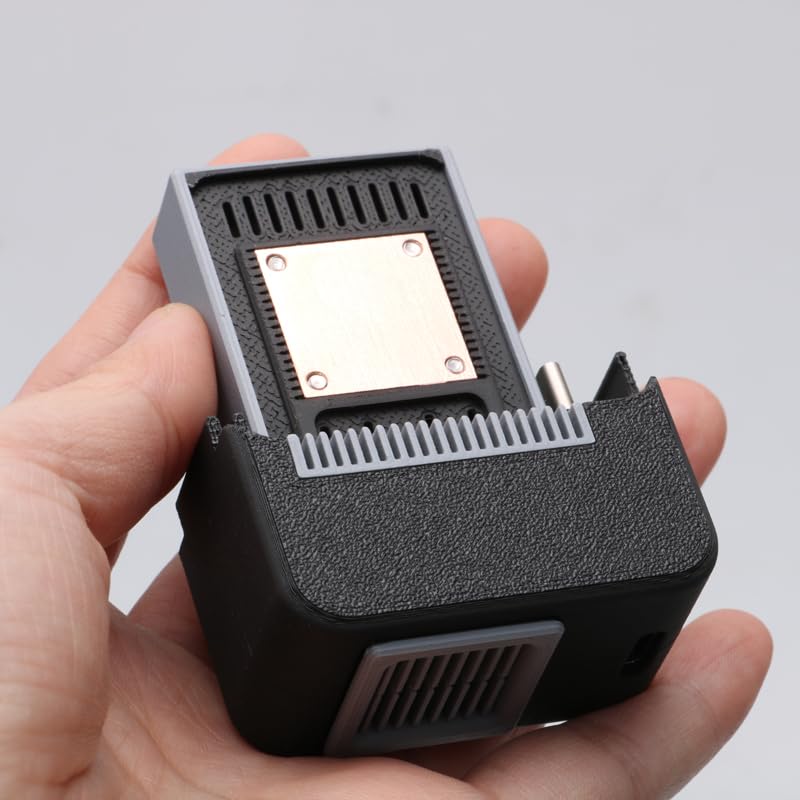 1PCS Action Camera Cooling Fan Radiator red copper heat dissipation module 3D Printed Shell Support Type-C-Type-C Data Cable Air-cooled Heat Sink for GoPro 9/10/11/12/13Specification:- Item name: air-cooled radiator- Color: black-blue / black-purple / black-gray- Size: 28.2x49.5x68mm/1.11x1.95x2.68inch- Weight: about 42.2g- Suitable for GoPro action camera 9/10/11/12/13Description:- Only one power cord is needed for recording and cooling, and continuous recording without overheating.- The new generation of heat dissipation adopts a more efficient air duct design, and the heat dissipation effect has been significantly improved compared to the first generation. Retaining the first generation red copper heat dissipation module while adding an air circulation duct, the battery cover card holder fixing method is very stable.- Due to GoPro power requirements, a 5V3A power supply is required. Some power banks may encounter compatibility issues (some power banks have false labels), and some USB-C data cables may also not be compatible. We strongly recommend using Type-C-Type-C data cables (not include). - Users who are using a power bank for the first time should check whether the power supply meets the plug-in operation requirements of GoPro before purchasing.- GoPro is likely to overheat in the following scenarios (In such cases, this radiator can be used to cool down the GoPro, enabling it to achieve better working performance.):1. Long-term high-resolution recording2. Use in a high-temperature environment3. Use with certain accessories4. Activating too many functionsNote:- Size is manual measurement, there are exist errors.- The camera, connection cable and others in picture shown will not include.- Due to unavoidable factors such as monitor, shooting angle, light source, etc., the color in the picture may have a very slight color difference with the goods you receive. Everything is subject to the goods you receive.- The product is produced using 3D printing to provide a variety of personalized color schemes. The contact surface inside the product may be uneven, but it does not affect the machine effect. If you mind, please do not purchase!- If you need to customize colors, please contact us for a minimum of five pieces.- The thermal conductive sheet used in this product is made of pure purple copper material. The thermal conductivity is excellent, but it is prone to oxidation and may change color slightly during use. But it does not affect the heat dissipation performance.- The heat dissipation performance of the product may vary depending on factors such as the model, wind speed, humidity, lighting intensity, image quality, and power consumption settings.Package include:1pcs x radiator