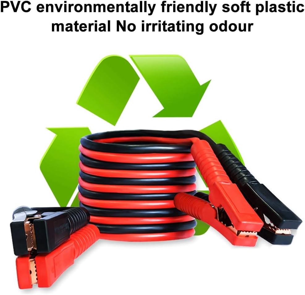Features: 1.You no longer need to worry about the car suddenly running out of battery halfway through. Jumper cables can be used to jump start batteries that have run out of battery or are running low. It is 4 meters long, allowing the booster cable to easily cross any other car's battery. 2.Soft rubber materials can be flexibly bent and designed specifically for warm and cold climates, adapting to different weather conditions. 3.The powerful clamp has excellent and sturdy jaws. The booster cable has four huge crocodile clips, sturdy serrated teeth, and springs providing good grip. Connecting car batteries is more convenient. Has better conductivity. 4.Compatible with vehicles: Jumper cables are very suitable for general vehicle types such as trucks, large SUVs, mid size cars, trucks, and small cars. Specification: Material:Copper clad aluminum wire core/PVC soft adhesive Color:Black,Red Suitable for 2500mAh. Packing Includes: 1 set Booster Cable
