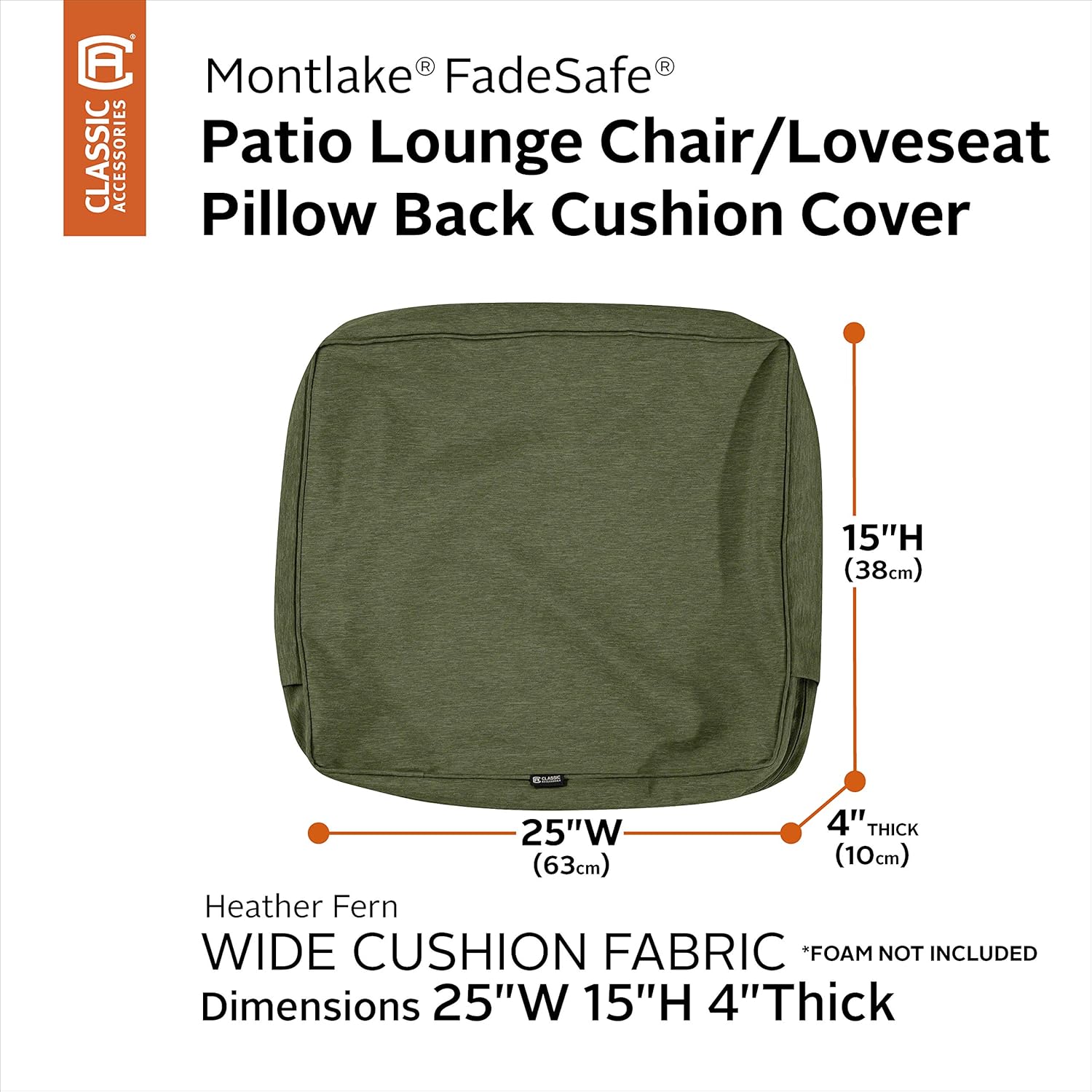 | Included Components | Classic Accessories 60-553-011101-RT Pillow-Back Cushion Shell |