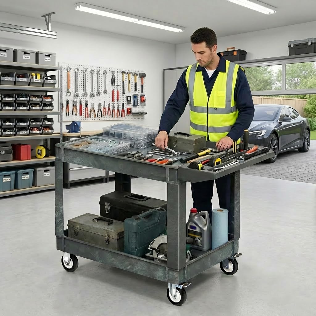 | Additional Features | Built-In Cup Holder, Built-In Shelf, Compact, Dent Resistant, Locking Caster |