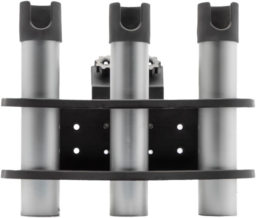 Keep all your rods ready in one place! Mounting directly into your Lund's Sport Track system, the 3-rod holder features three durable aluminum rod holders, perfect for transferring your gear to and from your favorite fishing hole. Slotted rubber caps on each rod tube hold the rods steady while protecting the rod from abrasions and scratches caused by boat vibrations and rough water. The holder also includes tool slots to store your fishing knives, a pair of scissors, extra lures, and more. The unit's oversized plastic knobs make it easy to install, remove, and move around your track system to set you up in that perfect spot.