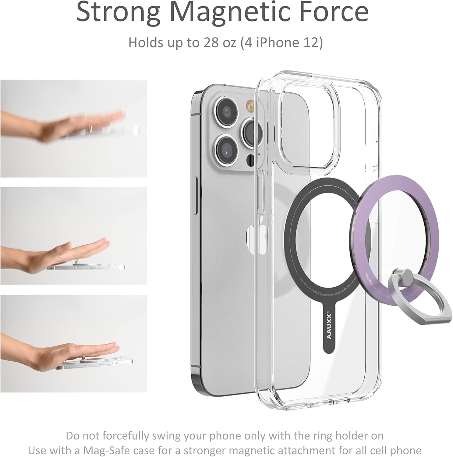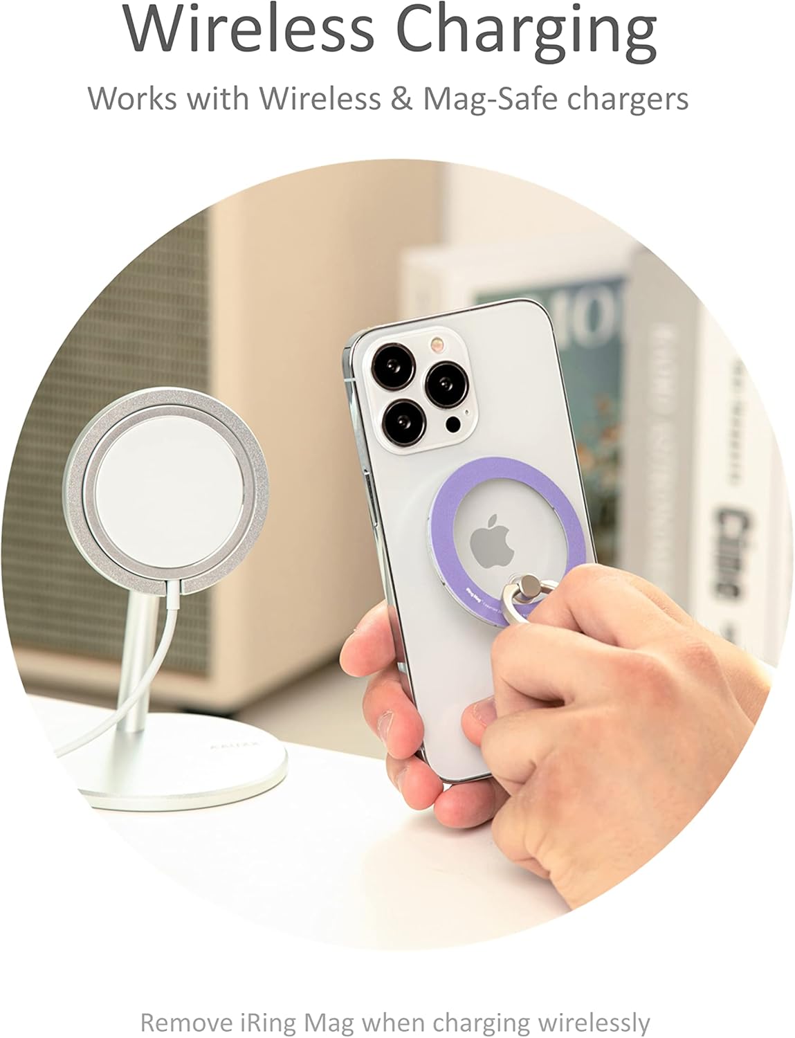 iRing Mag is a one of a kind magnetic ring holder that uses the highest grade of N52 magnet that allows you to easily attach and detach onto your phone. With its built-in magnetic feature, the iRing Mag snaps firmly and safely onto your phone without having to use any adhesive. Detach your magnetic phone grip to charge onto a Mag-safe charger and easily attach it back when needed.