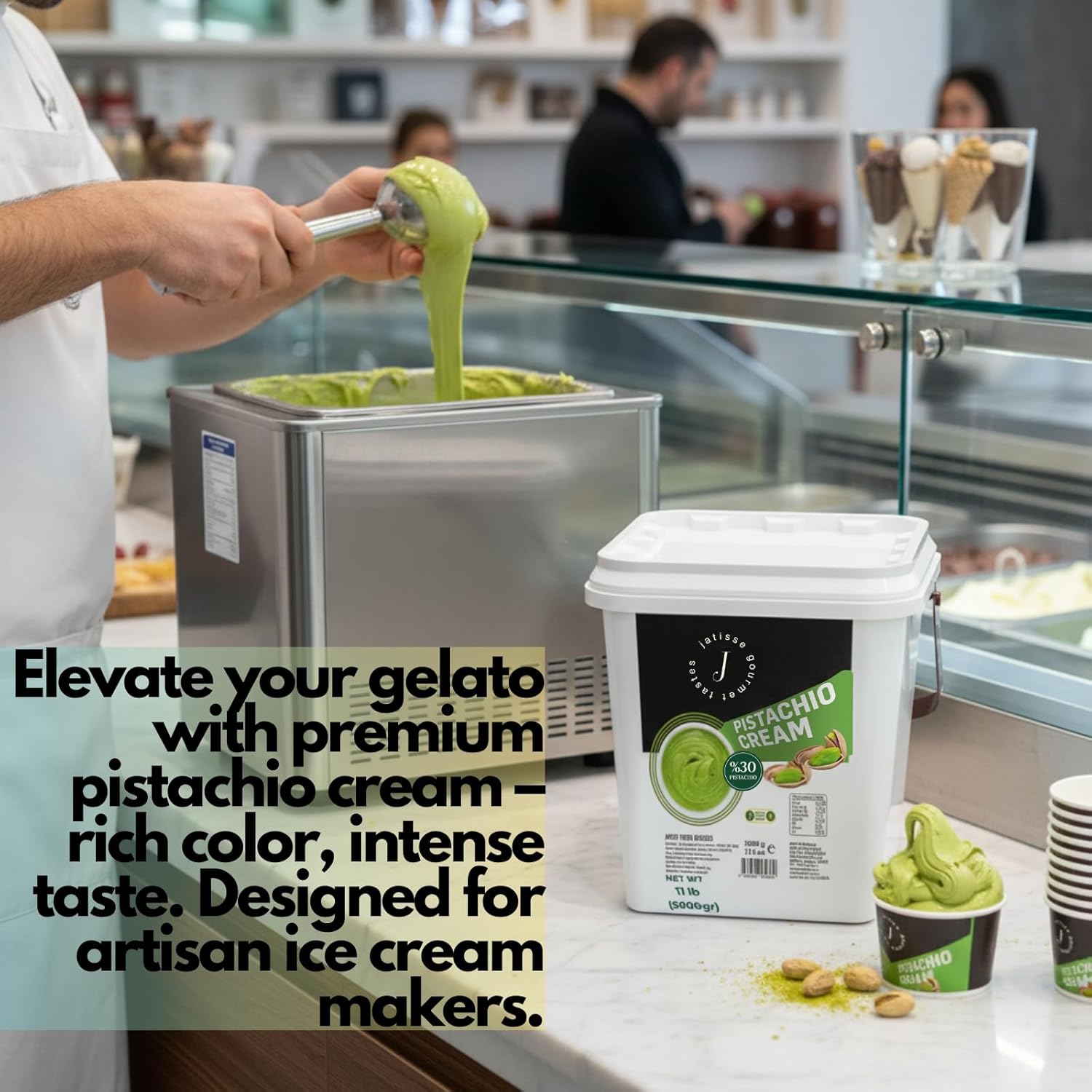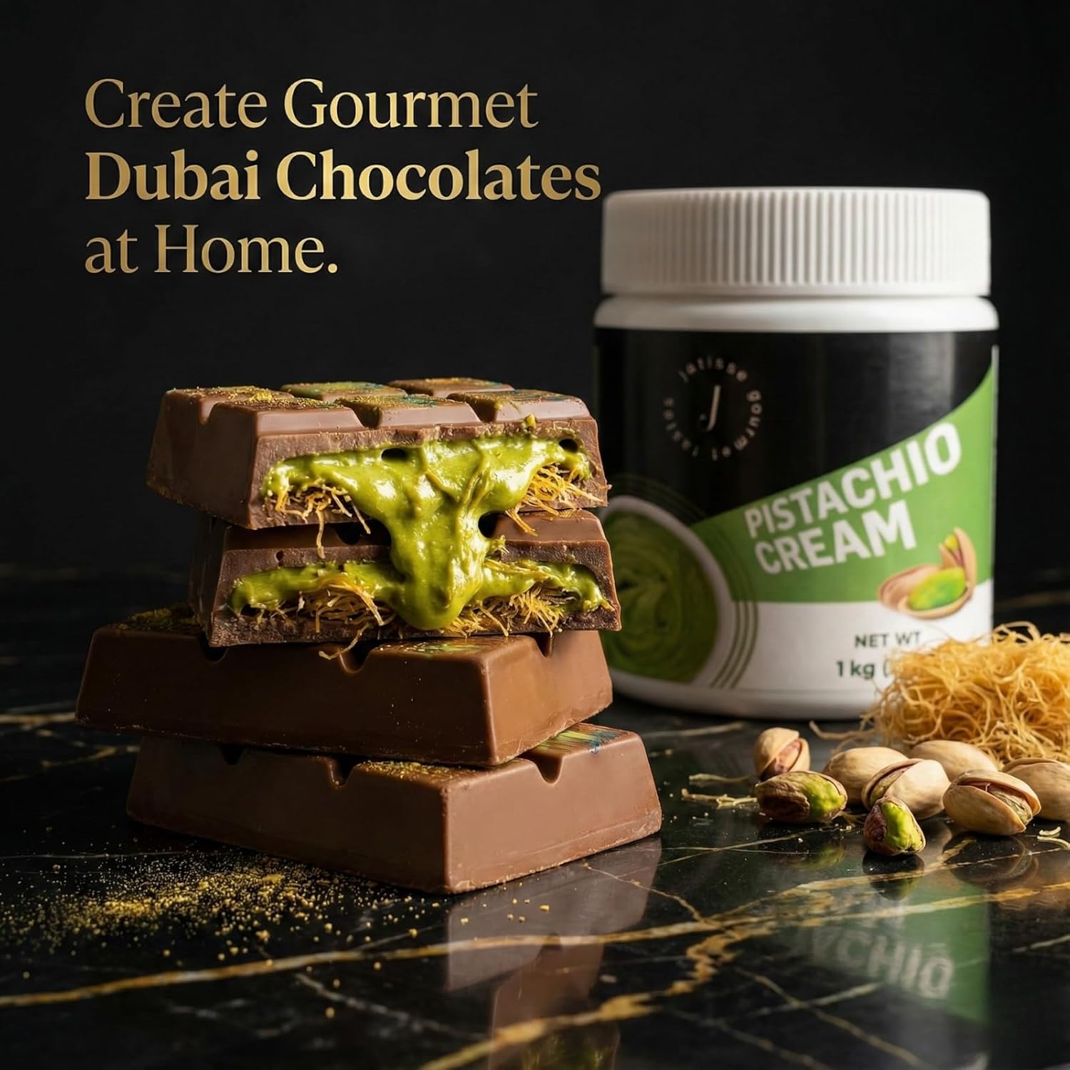 Discover the rich, nutty flavor of authentic Antep pistachios in Jatisse’s 30% pistachio cream — now in a wholesale 11 lb format designed for commercial kitchens, bakeries, and high-volume dessert production. Made from premium pistachios grown in Gaziantep, Turkey, this naturally green cream delivers intense flavor, a velvety texture, and clean ingredients without palm oil, additives, or preservatives. Perfect for trending Dubai chocolate bar kits, gourmet pastries, pistachio croissants, pistachio ice cream, or Middle Eastern kunefe and knafeh desserts. Whether you're a pastry chef, gelato maker, or foodservice supplier, Jatisse 5kg pistachio spread ensures consistent results in every batch. Packaged in a BPA-free, resealable plastic bucket for easy storage and freshness. Elevate your dessert offerings with a creamy, spreadable, and nutritious ingredient trusted by professionals.