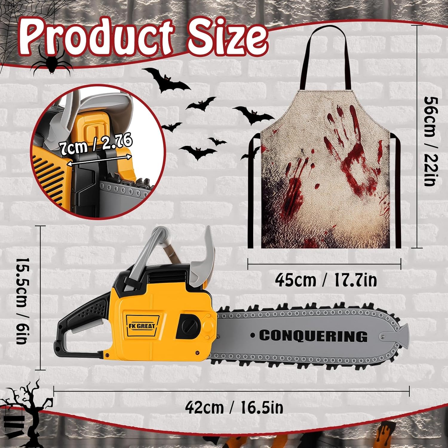 | Included Components | 1 x Halloween apron, 1 x Toy chainsaw |