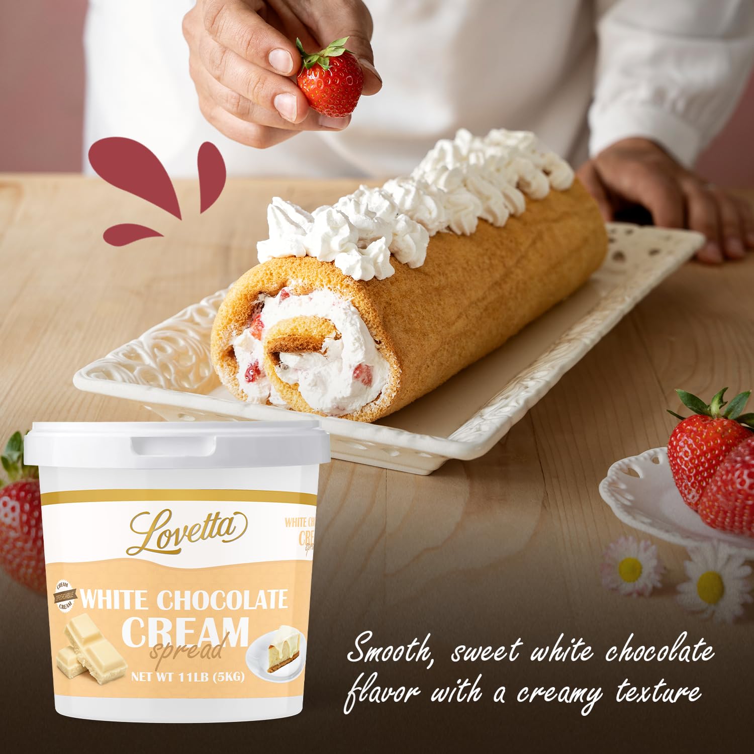 Lovetta White Chocolate Cream Bulk 11lb (5kg) Tub delivers a smooth, rich white chocolate flavor in a premium dessert cream crafted for professional bakeries and high-volume kitchens. Its velvety texture makes it ideal for filling pastries, layering cakes, topping crepes, piping into donuts, or creating signature white chocolate-inspired desserts. This commercial-size tub offers consistent quality, easy portioning, and dependable performance for cafés, restaurants, and manufacturers. Elevate your dessert menu with Lovetta’s gourmet White Chocolate Cream.