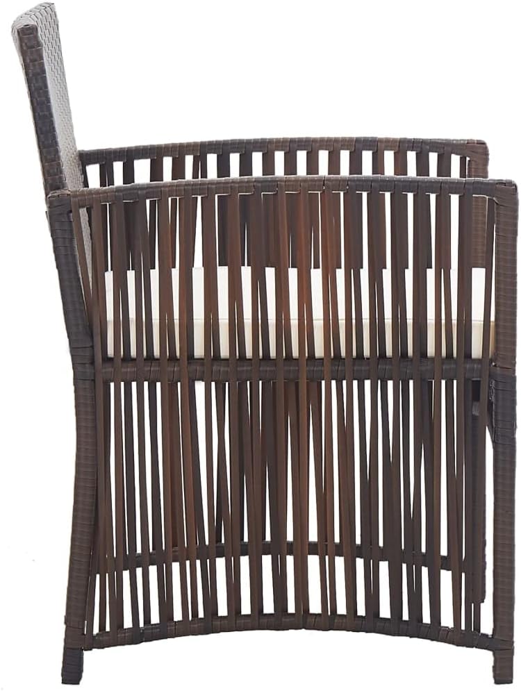 This set of 2 patio chair provides elegant style and comfortable enjoyment space for your outdoor life. Combines style and function, this chair set is suitable for all-year around use.It is made of powder-coated steel and PE rattan construction, which is sturdy enough to withstand frequent use. With the thickly padded seat, this chair set provides extra lounging comfort for you. Thanks to its lightweight construction, you can easily move it around house. The cushion cover with zipped design allows you to wash it with ease.Note: In order to extend the life of your outdoor furniture, we recommend you to clean it regularly and do not leave it outdoors without protection unnecessarily.Clean: Use a mild soap solution.Storing: If possible, store in a cool, dry place indoors. If the product is stored outdoors, protect it with a waterproof cover. Wipe and dry the excess water or snow from flat surfaces after a rain or snowfall. Allow sufficient air circulation to avoid moisture-related damage.Color: BrownCushion color: Cream whiteMaterial: Powder-coated steel, poly rattanCushion material: Fabric (100% polyester)Chair dimensions: 21.9" x 22.8" x 29.9" (W x D x H)Seat height: 15.2"Armrest height: 22.4"/23.2"Seat size: 18.5" x 19.3" (W x D)Cushion thickness:2"Assembly required: YesDelivery contains:2 x Garden armchair