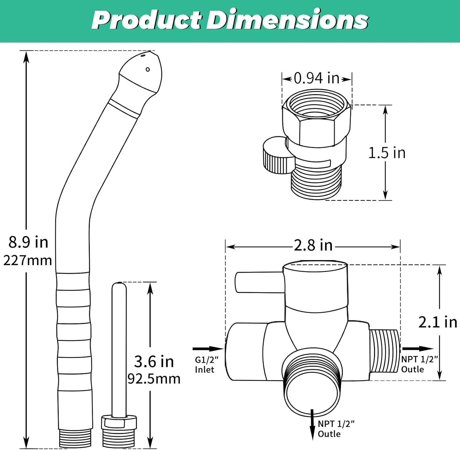 | Included Components | Shower diverter, Shower hose, Two enema nozzles, Suction cup |