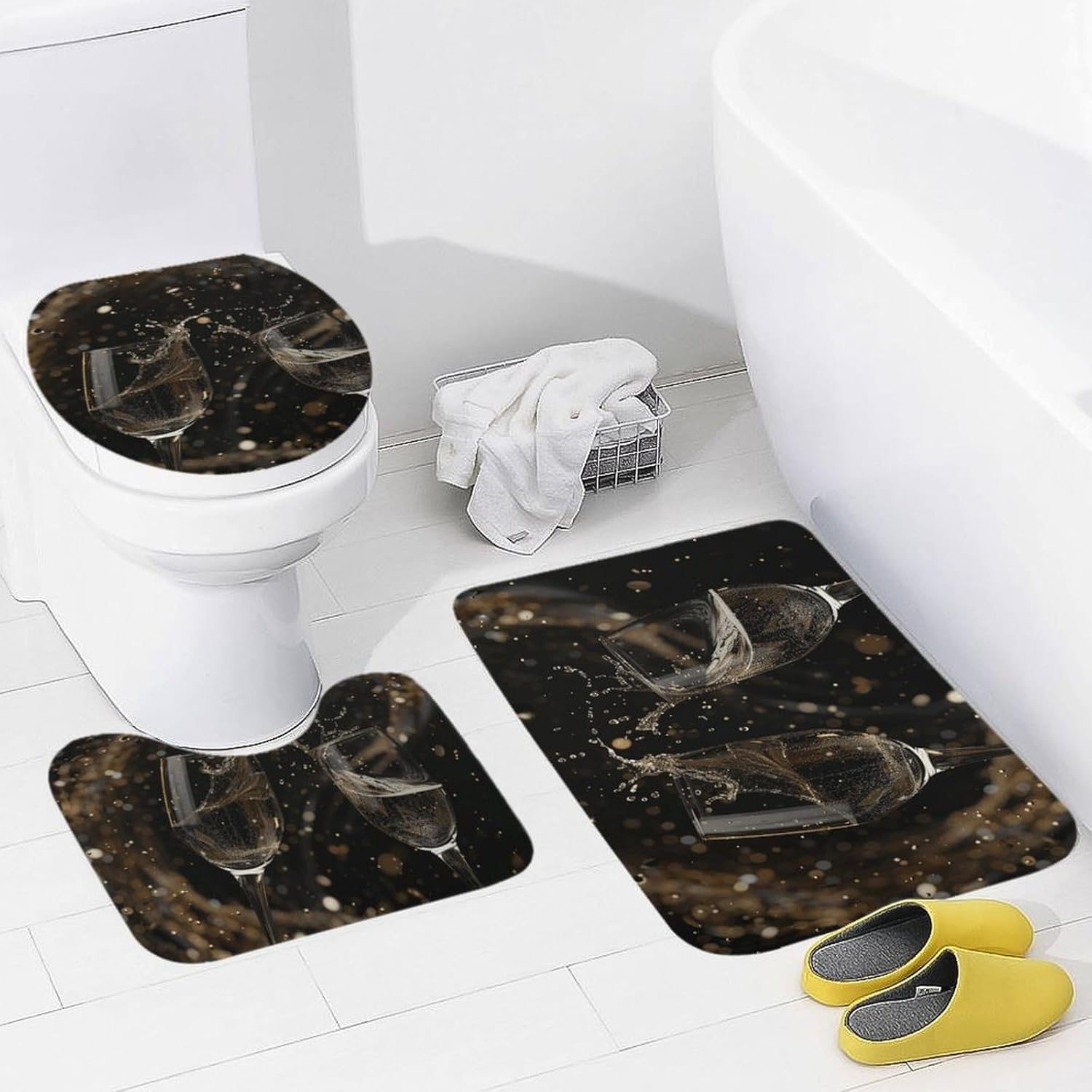 The Two Glasses of Champagne printed bathroom mat set provides a soft and comfortable surface for your feet. Whether you are taking a shower, getting ready for the day, or resting at night, this rug provides you with a comfortable place to step on The Soft bathroom mat contour mats and cover cover Suitable for home bathrooms, guest rooms, bedrooms, living rooms and other places, Washable, not machine washable