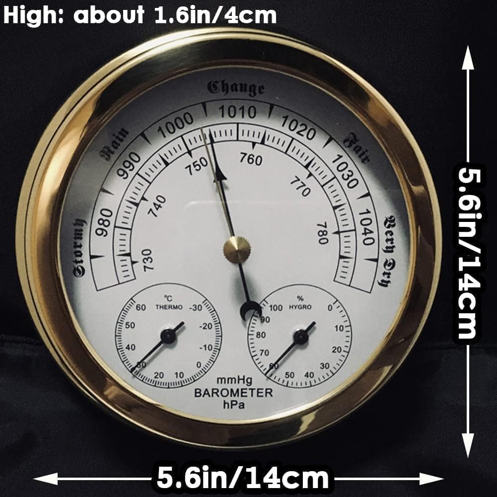 UUNVTOSUBarometer,Traditional Weather StationThis beautiful traditional piece would fit well in any fine study, library or fine dining room.Specifications:Color: GoldMaterial: Pure copper, ABSDiameter: 5.6in / 14cmBarometer pressure: 980~1040hPa / 730~780mmHgTemperature: -30~60Humidity:0%~100%RHResolution: 1hPa, 1, 2%RHPackage includes:1x 3 in 1 BarometerBarometer,Traditional Weather Station