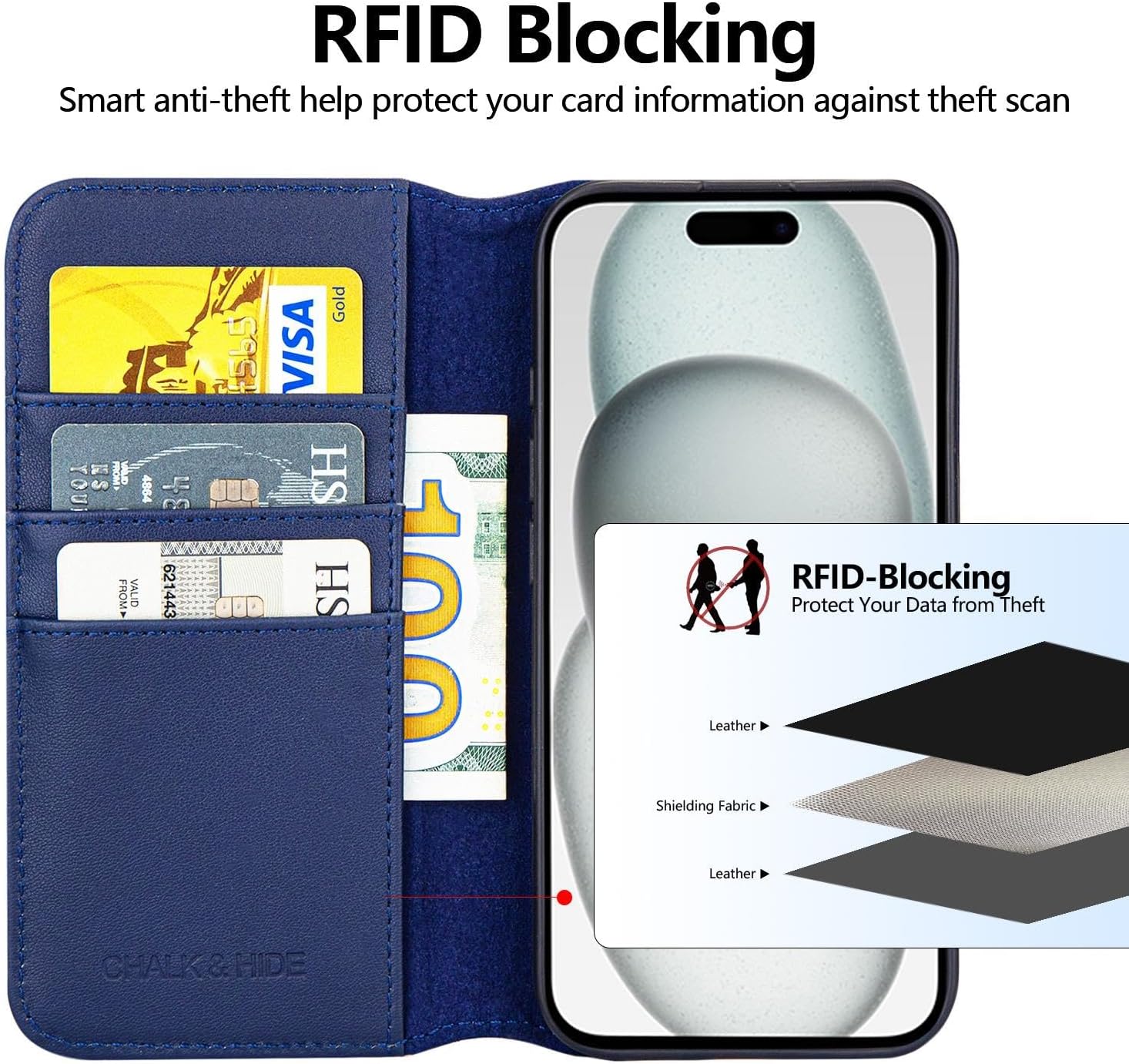 This Chalk & Hide genuine leather case cover is compatible with Apple iPhone 15 (6.1"). This Chalk & Hide case for Apple iPhone 15 (6.1") is precisely designed ensure a snug fit every time, allowing easy access to all your model's important functions. This Chalk & Hide real leather case for Apple iPhone 15 (6.1") has precision cut outs that provide unobstructed access to your phones camera, speakers, headphone jack and charging port. This cover is made from high grade real leather and features 2 card slots for storing a bank card, driving license or business card with another larger compartment that is ideal for storing notes or cash. Product FeaturesMade from high quality genuine leather with a matte finish.Precision moulded inner shell with soft touch finish. Magnetic tab closure keeps your mobile safe and secureAccess to camera, charging port and headphone socket. Suitable for Apple iPhone 15 (6.1").