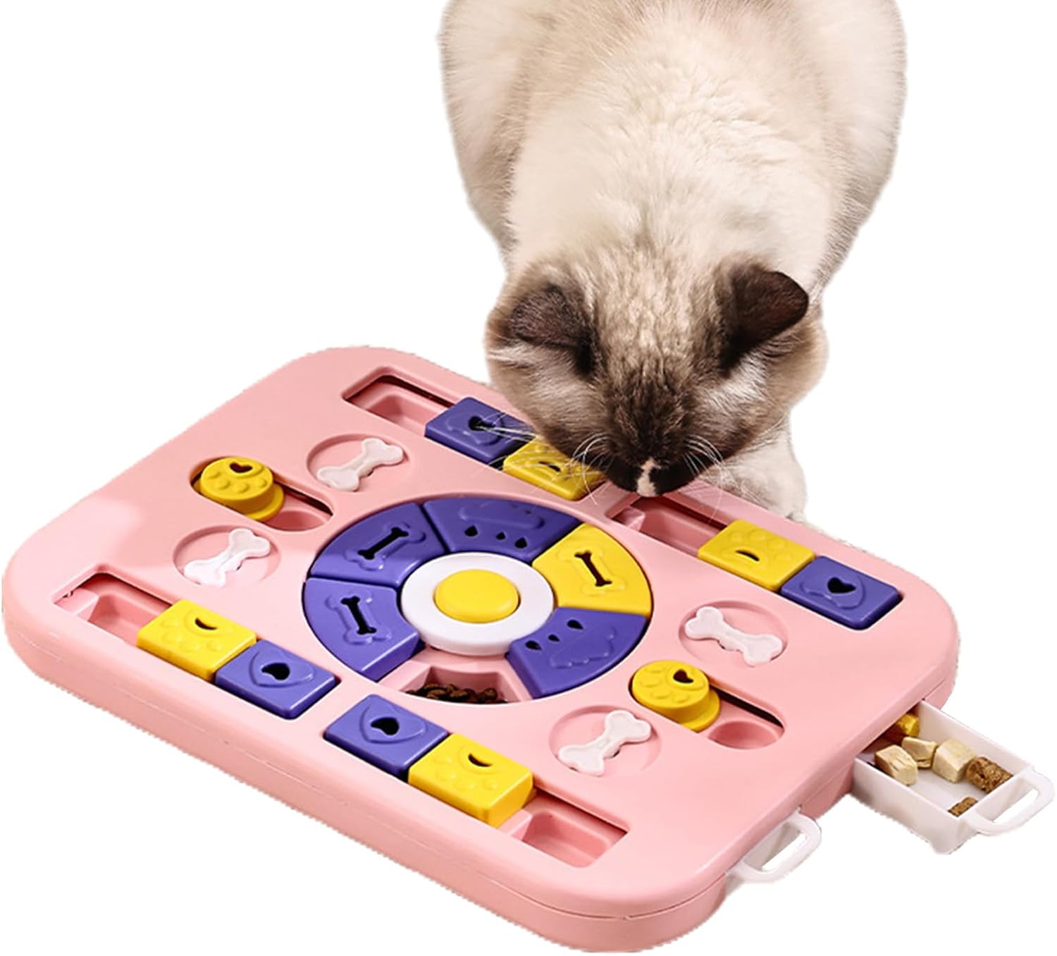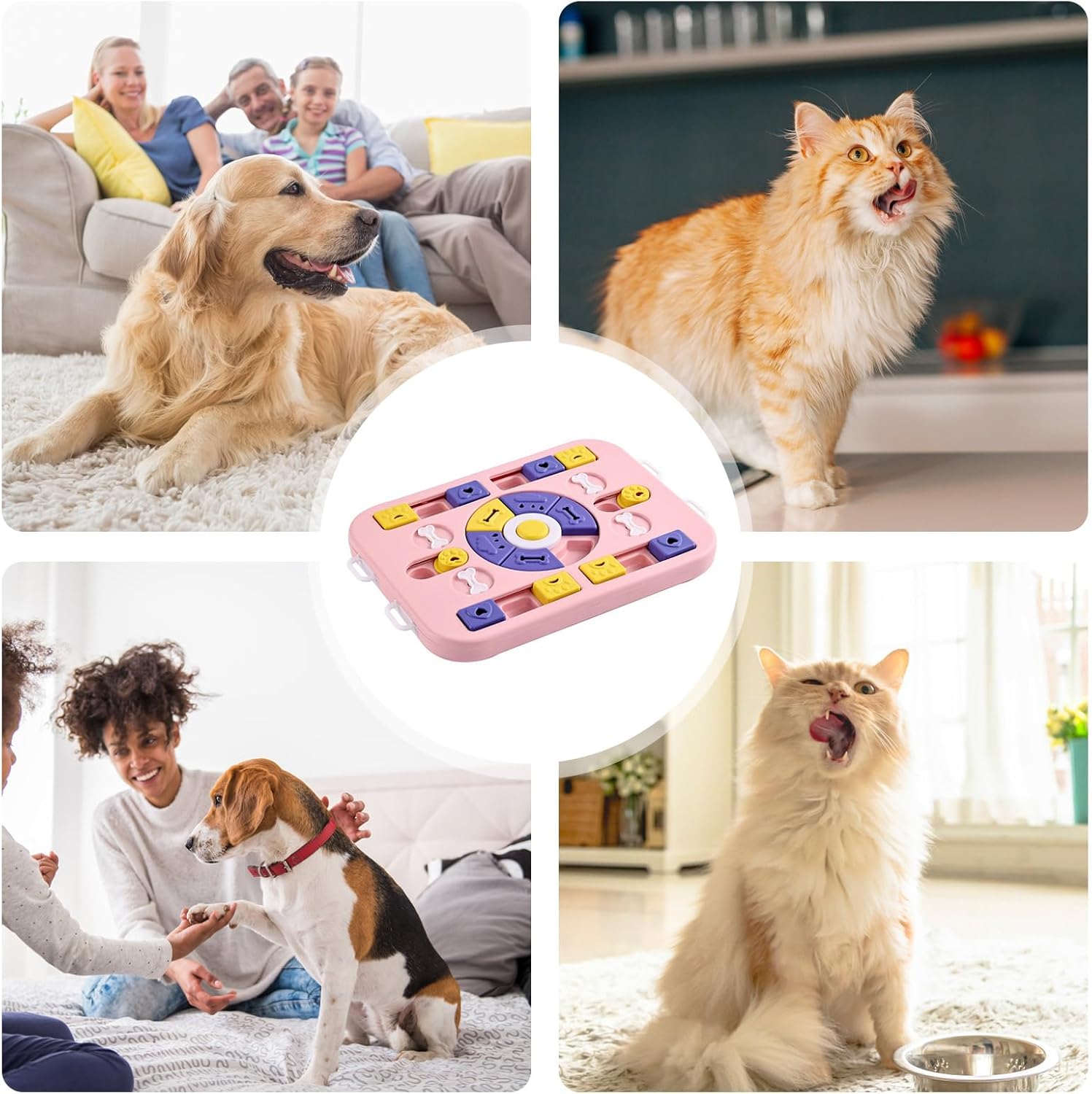 Exercise your pupper's sense of smell and touch as they enjoy finding their food and strengthen their protection skills, making them more quiet and well-behaved. Plus, our durable design ensures the toy is not easy to wear.Specification:Product name: Dog Treat Dispenser Slow FeederProduct color: Pink, blueMaterial: PPScope of application: Applicable to cats and dogsProduct weight: about 710gPacking List:1pcs of Dog Treat Puzzle FeederNote:Due to different lighting and screen settings, the item color may be slightly different from the picture.Due to different manual measurements, please allow a 1-2cm difference in size.