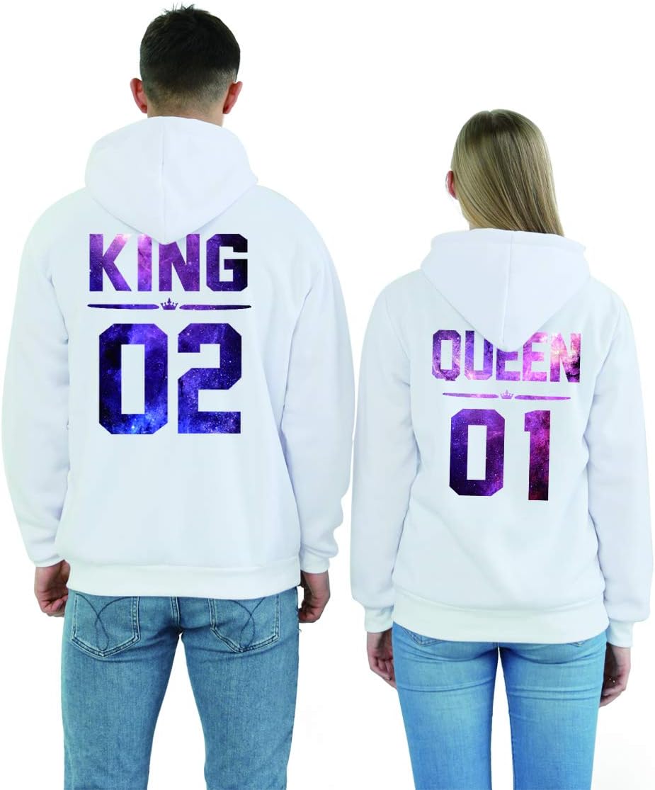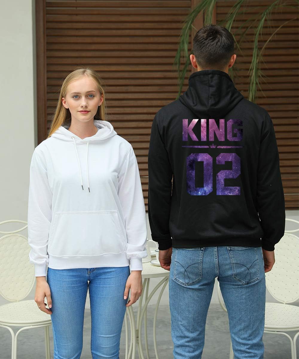 King&Queen hoodies.Made of 100% cotton,suitbable for spring and summer. Perfect gift for couples, dad & mum, boyfriend / girlfriend, brother / sister. Perfect for birthday, anniversary, honeymoon, valentines day and every important day for your love and you. Product Feature: Soft and silky Ribbed crew neck Printed with environmentally friendly materials Heat transfer technology graphics never fall off or crack Soft and pleasant skin feeling, allergy-free No fading or shrinking after testing Washing Instructions Washing under 40 ° C water temperature recommended Do not iron directly on the graphic dry on low heat (natural air drying preferred) Do not bleach Please read our size chart in the left picture before buying. Due to the manual measurement, please allow 1-3 cm difference. Due to the difference between different monitors and light, the image may not reflect the actual color of the product. Thank you for your comprehension! If you have any question, please contact us at any time. We will reply you as soon as possible.