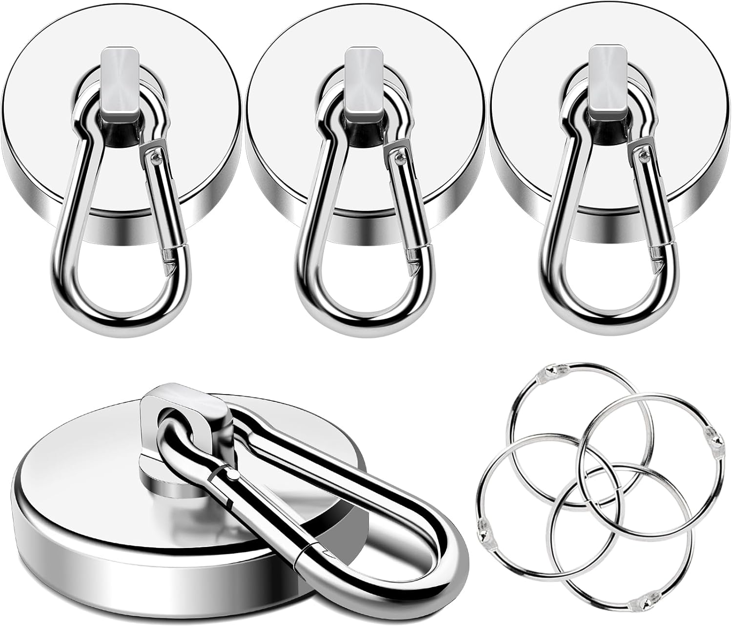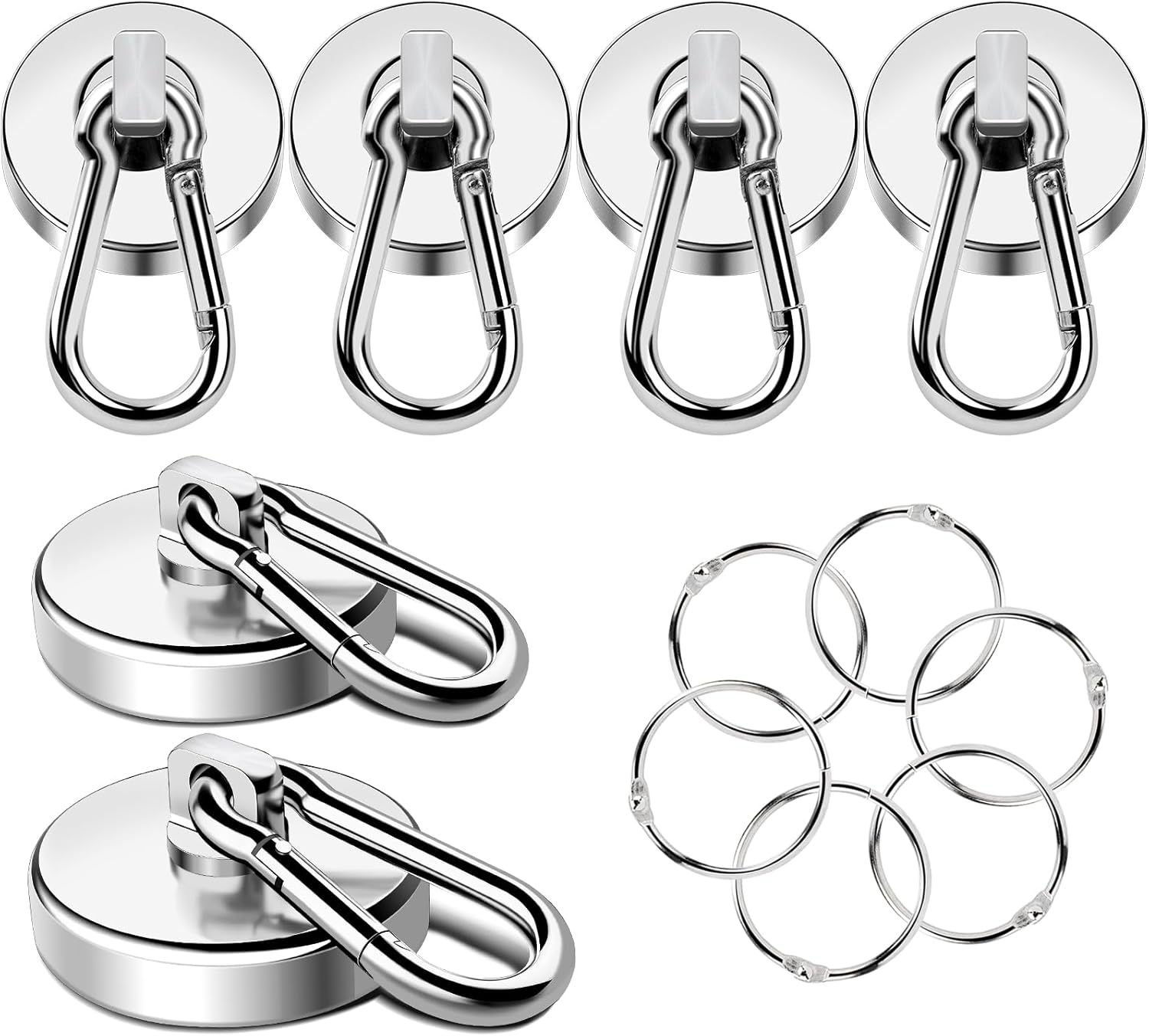 MIKEDE Strong Magnetic Hooks, 150LB Neodymium Heavy Duty Magnets with Swivel Carabiner Hook, Magnetic Hangers for Locker, Kitchen, Cruise Cabin, Office - 10 Pack