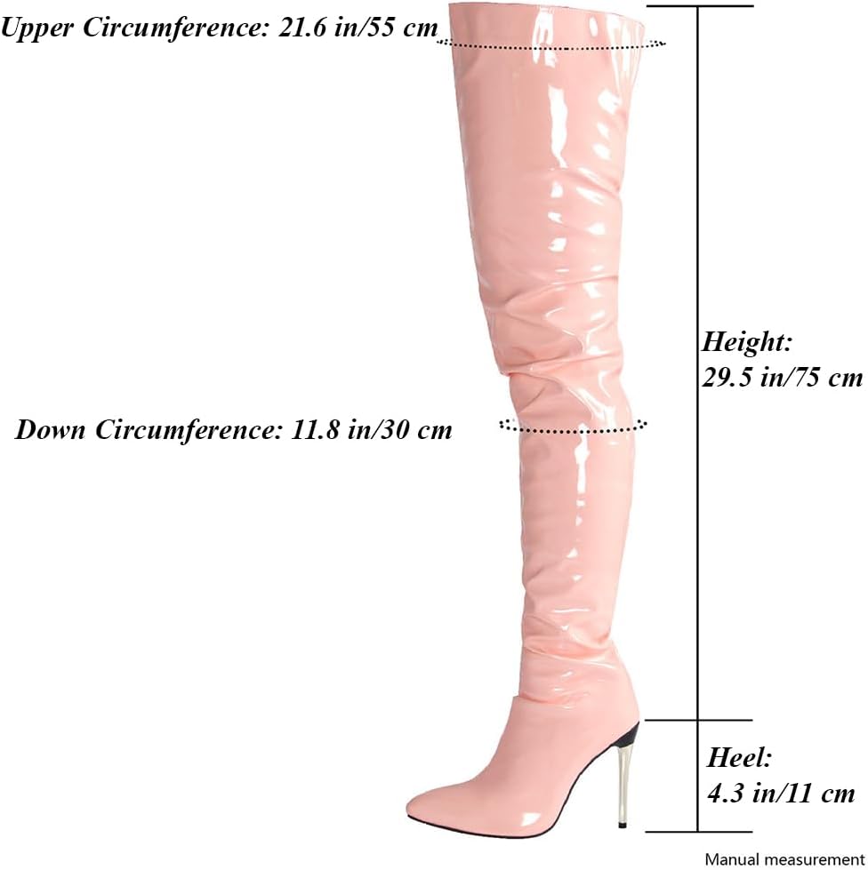 Over The Knee Boots for Women Stretchy Patent Leather Sexy High Heel Long Boots for Club Fashion & Special Occasions Features: · Glossy PU patent leather delivers bold shine for thigh - high boots. · 4.3 in/11 cm stiletto heel and pointed toe elongate legs, enhancing confidence. · Side zipper enables quick on - off for hassle - free wearing. · Optional sexy red outsole adds bold charm, normal outsole suits daily use. · Stretchy PU upper hugs legs snugly for lasting comfort. · Available in black/white/red/pink, ideal for club and party styles. · Sleek over - the - knee design pairs perfectly with dresses and shorts. · Perfect for night outs, dances, and making sexy fashion statements. Specifications: Item Name: Over The Knee High Boots For Women Toe Shape: Pointed Toe Heel Type: Stiletto Heel Height: 4.3 in/11 cm Shaft Height: 29.5 in/75 cm Upper Material: PU Outsole: Normal/Sexy Red Outsole (Optional) Sole Material: Rubber Closure Type: Side Zipper Color: Black/White/Red/Pink Package Includes: 1 Pair*Knee High Boots For Women Note: 1. Due to the different display and different light, the picture may not show the actual color of the item. Thanks for your understanding. 2. Please allow slight differences due to manual measurement.